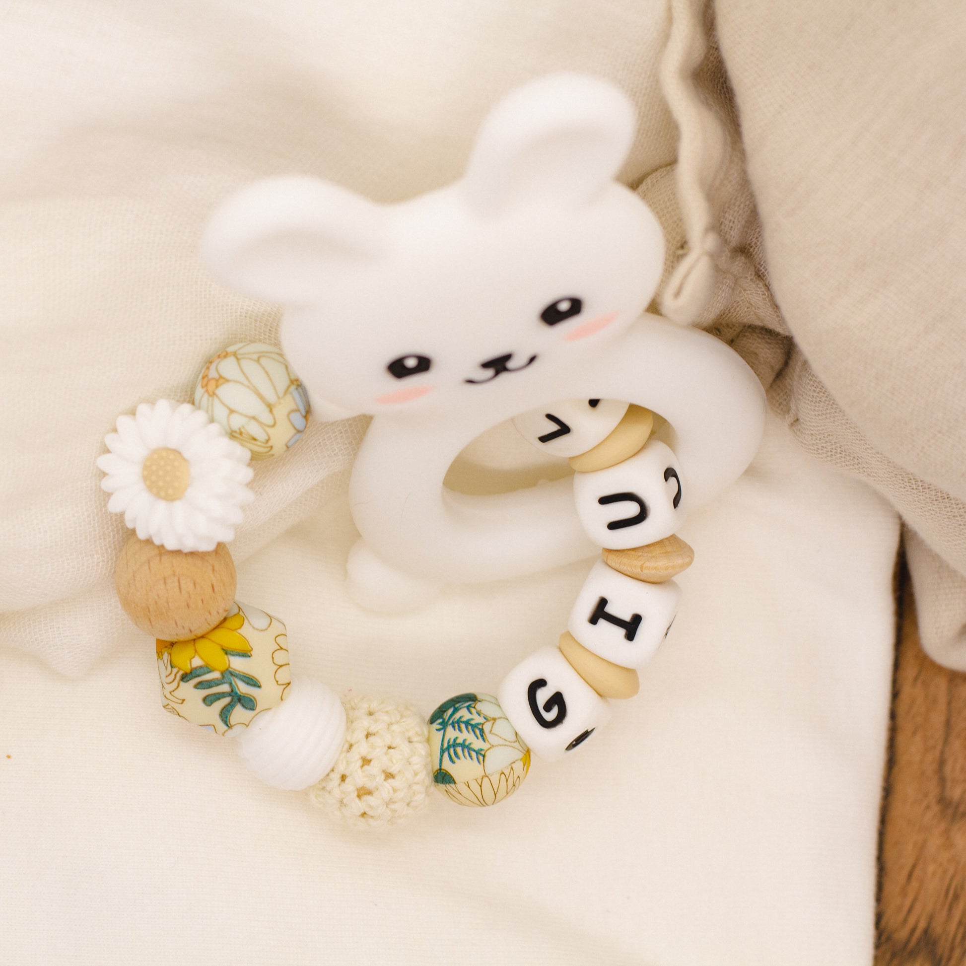 Bébé laissera l'empreinte de ses premières dents de lait sur les perles de son anneau de dentition, ce qui vous rappellera d'adorables souvenirs lorsque bébé aura grandi.